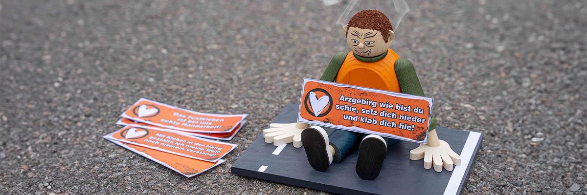 Er ist da: Das Räuchermännchen "Klimakleber". Dieses besondere Räucherfigur vereint Tradition und zeitgemäße Ansichten und reflektiert eine neutrale Haltung zur aktuellen Zeitgeschehen.